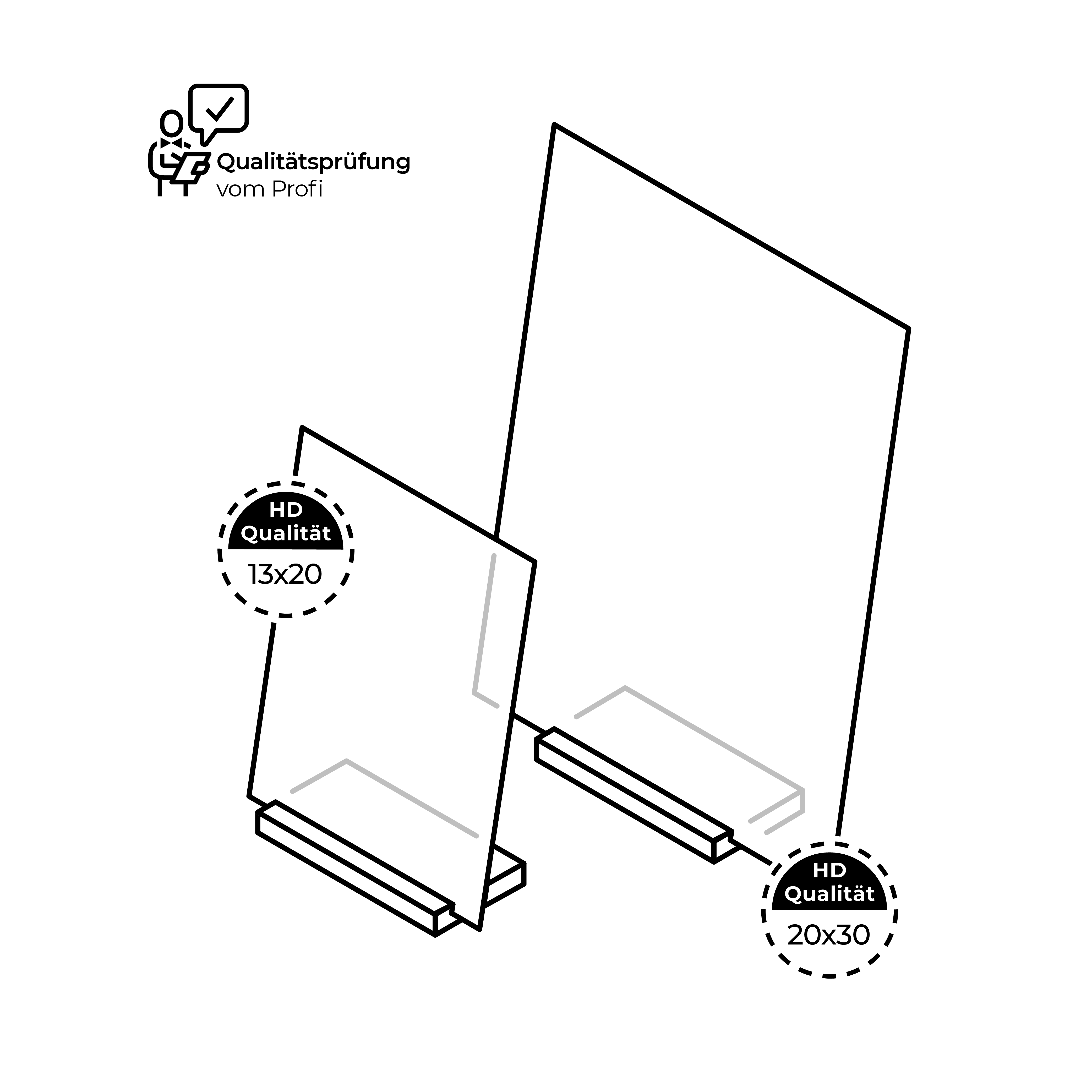 Unsere Fotoaufsteller sind echte Highlights! Aus transparentem Acrylglas gefertigt, bieten sie eine kristallklare Sicht auf deine Bilder und verleihen ihnen einen eleganten Rahmen.